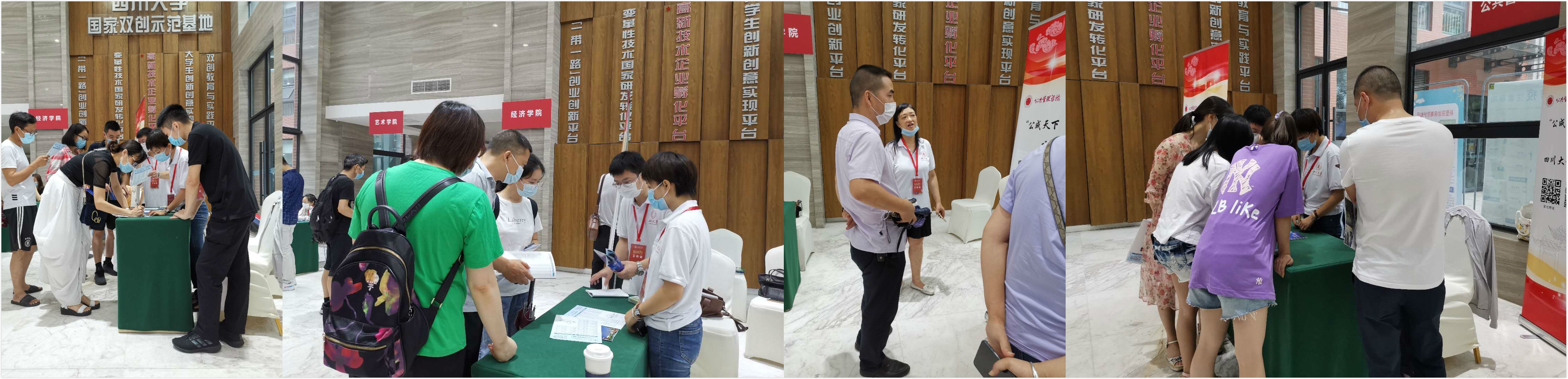 当日上午八点,我院招生咨询团队便抵达四川大学国家双创示范基地进行学院咨询点的布置,准备了招生宣传资料、学院宣传手册、学院招生宣传板等资料供前来咨询的学生、家长取阅。