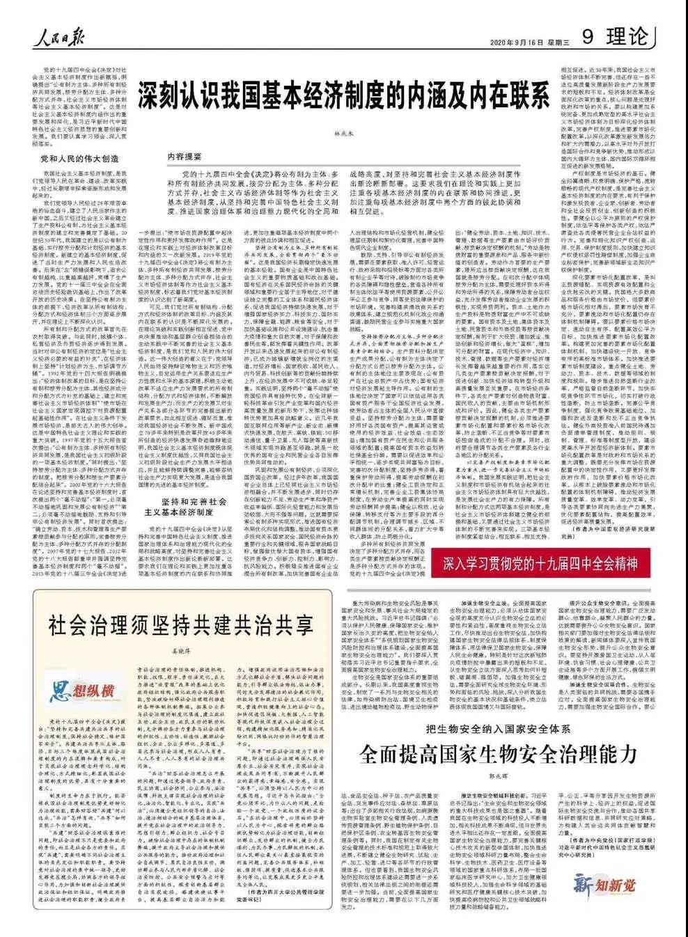 我院姜晓萍教授的《社会治理须坚持共建共治共享》发表在《人民日报》2020年09月16日第09版。