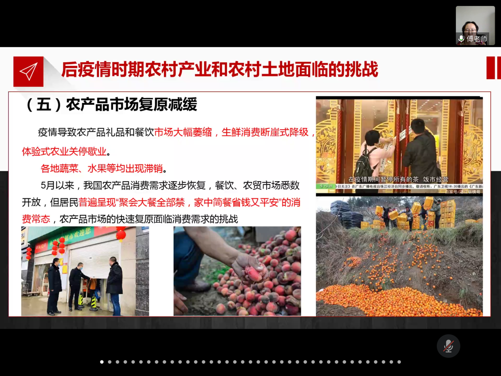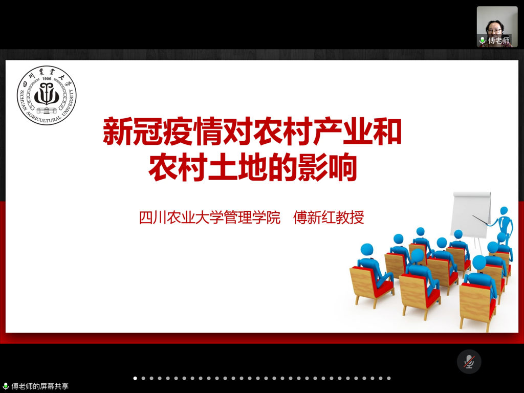 2020年6月30日下午16:15,国务院特殊津贴专家、四川农村发展研究中心常务副主任傅新红教授学术讲座《新冠疫情对农村产业和农村土地的影响》于线上成功举办。四川大学best365中国官方网站刘润秋教授主持了此次讲座,土地资源管理专业研究生及本科生参加了此次讲座。