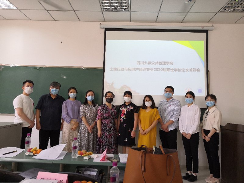 2020年5月18日,土地资源与房地产管理系2020届硕士学位论文答辩会在best365中国官方网站214教室成功举行。四川农业大学管理学院院长傅新红教授应邀作为答辩主席,主持了本次答辩会。答辩委员会成员包括四川省社会科学院高杰副研究员、土地资源与房地产管理系刘润秋教授、杨智恒副教授、马爱慧副教授、董欢副教授。土地行政与房地产管理专业4名研究生参加了此次答辩会。