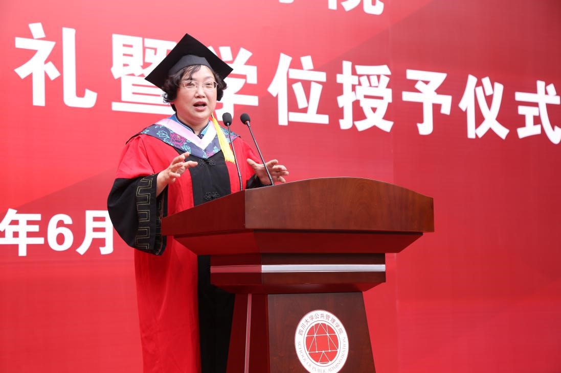 典礼在庄严的国歌声中开启,院党委书记姜晓萍教授代表学院向圆满完成学业的2020届毕业生表达了衷心祝贺和美好祝愿。姜晓萍教授在致辞中勉励毕业生要培养“三力”,即走向社会、走向卓越的能力;勇对挫折、提升逆商的努力;坚持不懈、千锤百炼的定力。同时,姜晓萍教授还强调同学们要永怀仁爱之心,培养责任之心,追求包容之心,期望从公管走出的每一位毕业生既要铭记成为国家栋梁的责任,更要在未来走得更好、走得更远、走得快乐。