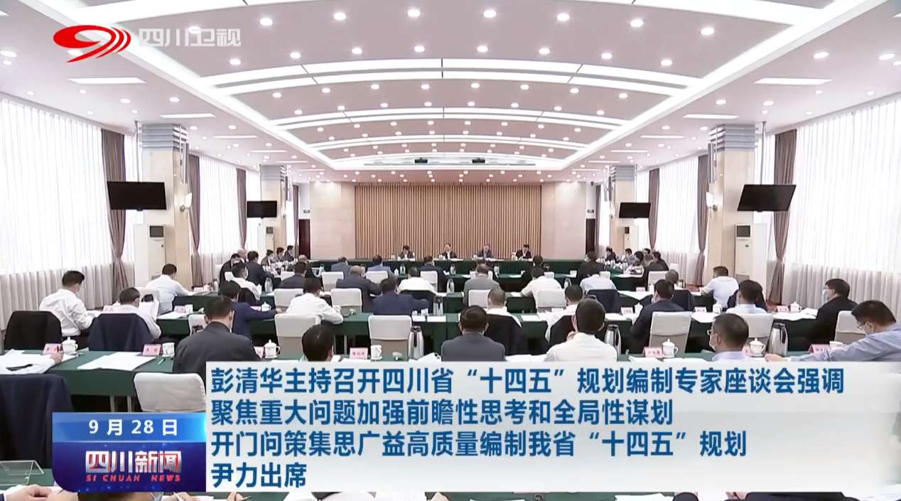 9月28日,省委书记彭清华在成都主持召开四川省“十四五”规划编制专家座谈会并讲话。他强调,要坚持以习近平新时代中国特色社会主义思想为指导,全面贯彻落实习近平总书记对四川工作系列重要指示精神,牢牢把握党中央关于“十四五”时期经济社会发展的新的重大判断和部署要求,聚焦事关四川长远发展的重大问题,加强前瞻性思考、全局性谋划、战略性布局、整体性推进,坚持开门问策、集思广益,高质量编制我省“十四五”规划。省委副书记、省长尹力出席座谈会,省领导罗文、李刚,省直有关部门和部分中央驻川机构负责同志,专家学者代表等参加座谈会。