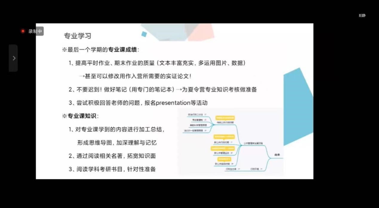 5月14日晚上19点,保研经验分享线上讲座在腾讯会议平台准时开始。9名保研到国内知名高校继续深造的2021届本科生从目标院校信息搜集、夏令营申请、保研评测等不同阶段为同学们解析整个保研的流程,事无巨细地为同学们点出了保研过程中可能出现的各种问题。另外,学长学姐们立足于专业实际情况,分学校、分区域就保研要求也做了详细说明,和同学们分享了保研申请材料提交、推免信息搜集、现场面试技巧等经验。
