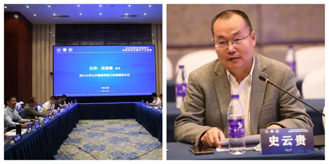 左图为四川大学best365中国官方网站行政管理系主任范逢春教授主持闭幕式、右图为四川大学best365中国官方网站院长史云贵教授出席闭幕式并致辞