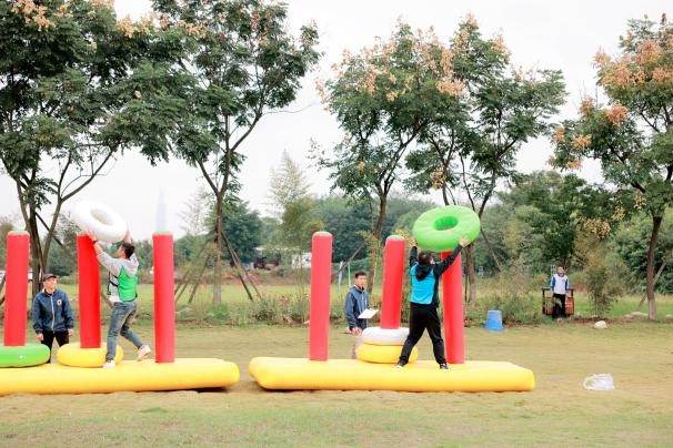 上午的活动以小组间的对抗游戏展开,一是要求团队高度协作的“鼓动人心”;二是离不开集思广益和协作分工的“汉诺塔”,队员用最少的步骤协作将汉诺塔从初始位置原样移动到另一个位置。一次次试错、一次次演练都是对于队员们细心耐心和默契度的大考验。团队游戏靠一两个人的努力是远远不够的,只有借助全队成员的共同努力才能取得优异成绩,趣味的活动让在场的同学无不尽笑颜开。
