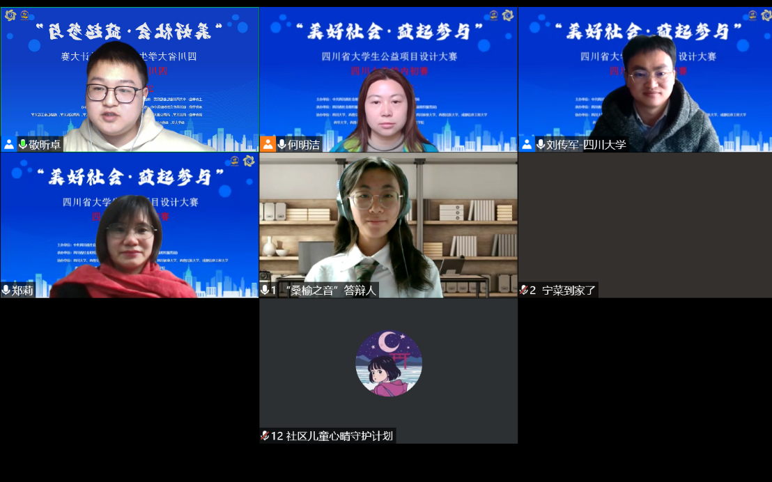 为深入贯彻落实党的十九大精神,激发大学生关注社会、热心公益的积极性,深化校地合作,在四川省民政厅支持下,中共四川省社会组织第二综合党委、四川省社会组织管理局于2021年10月发起“美好社会•益起参与”四川省大学生公益项目设计大赛,我院社会学与心理学系承办本次大赛的校内初赛工作。2021年11月25日“美好社会•益起参与”四川大学校内初赛以在线会议的方式圆满完成!