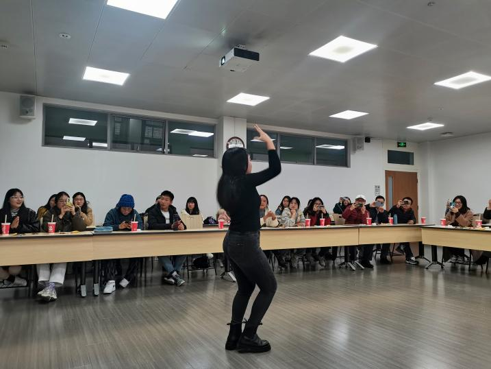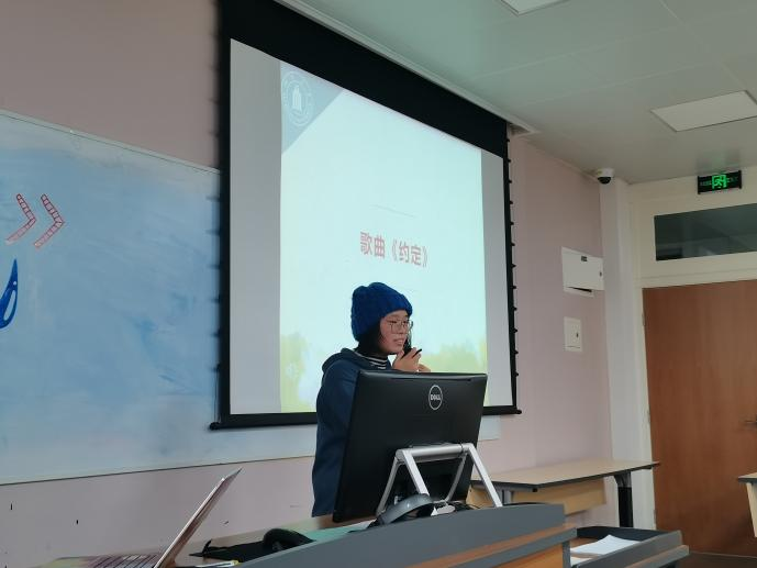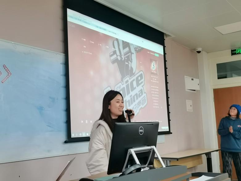 接着是表演节目环节,张雯杰同学演唱歌曲《约定》,牟芳娇同学表演舞蹈《LATATA》,曹杨老师和张雯杰同学共同演唱歌曲,以彭峰老师为首的五位男老师演唱《明天会更好》。整个活动妙趣横生,表演也十分精彩,极大地调动了大家的积极性,富有意义。