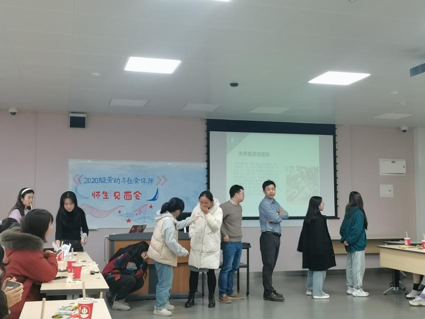 活动开始,进行第一项:自我介绍环节。首先由老师逐个进行介绍,主要围绕基本情况、专攻领域、以及对同学们的了解和未来的期许几个方面展开。根据老师的介绍,四川大学劳动与社会保障系是以管理学、经济学等学科为基础,根据社会对人才的现实需求,坚持高质量、重特色的人才培养理念,以社会保障的教学为中心,使学生学有所长,学有所用,成为德、智、体全面发展,通晓中外社会保障理论与实务,系基础知识扎实,业务知识面宽,具有较强的理论研究能力和教学能力的复合型应用型人才。接着,每位同学也从自我信息、对专业的期待等方面展开了简短的自我介绍。通过这一环节,师生们均在舒适轻松的氛围中介绍了自己,了解了彼此。