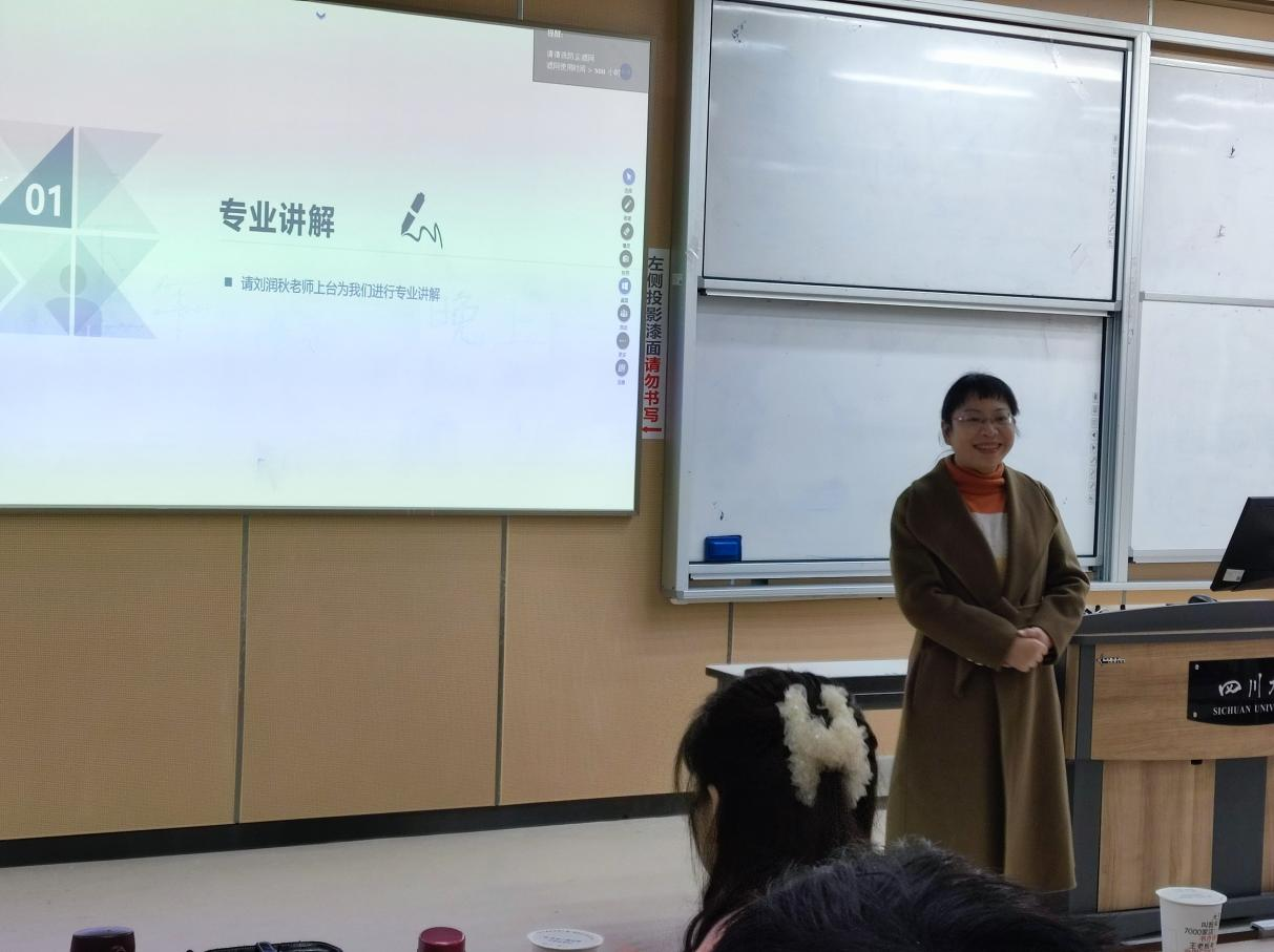 活动伊始,刘润秋老师作为教师代表进行开场发言。刘润秋老师首先表达了对全体同学加入土管大家庭的喜悦与欢迎,并以时下热门议题“卷”切入,句句真切。她要求,土管学生要“土”,要沉下心来为中华之崛起而读书。刘润秋老师还指出,“卷”不只是时代的原因,我们要意识到我们整个国家都正在“爬坡”过程中,如果我们承受住了,不管是家庭社会,甚至是整个国家,都会有很大成长。进入土地资源管理专业,你们可能会面临很大竞争,承受住了,这将会是一个让你们成长的平台。希望大家能够在土管这个大家庭里共同进步。