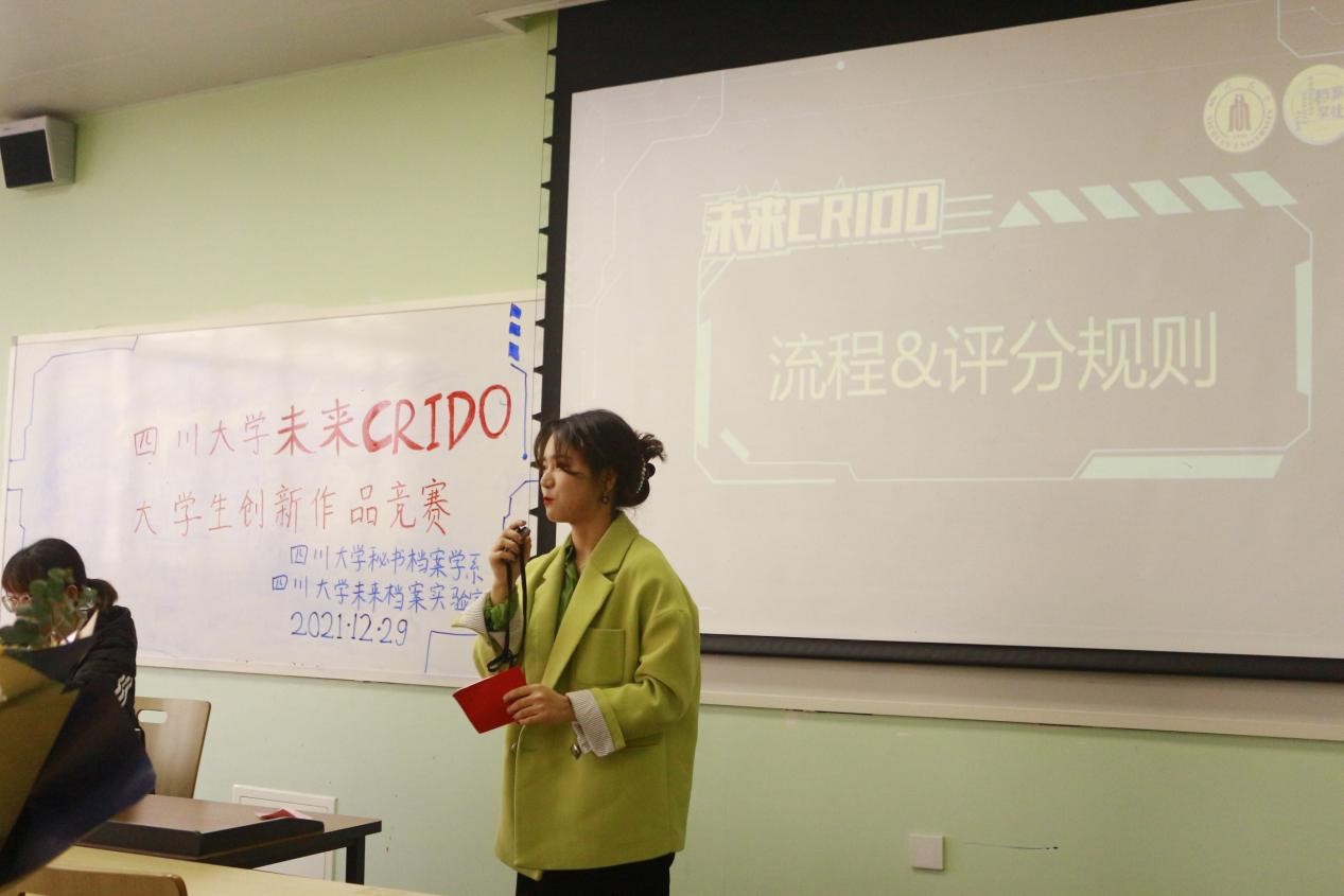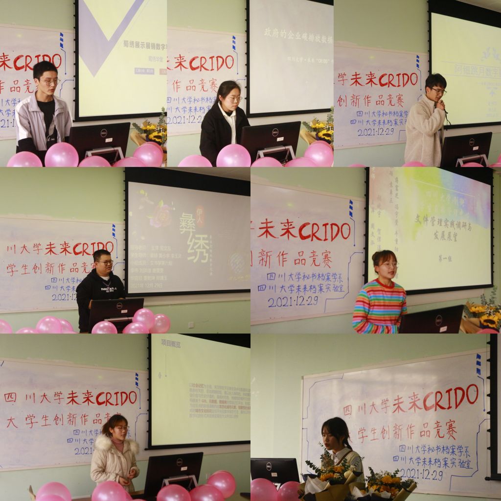 2021年12月29日,四川大学best365中国官方网站秘书档案学系主办的四川大学第二届 “未来CRIDO”大学生创新作品竞赛成功举办。本次活动依托教改项目《课程思政引领下的数字教学模式——基于“未来档案全景课堂”的研究》与《文书学》课程并承四川大学未来档案实验室的学术支持,旨在培育学生以问题为导向的研究与创新能力,以促进专业建构同新时代本科教育改革与发展精神的融合。为期三个多月的活动于9月15日正式启动,37名同学在教师与学生导师的指导下,参照科学竞赛作品的规范流程,通过前期培训、开题、研究方案设计、全过程研究、研究报告写作、研究成果展示等最终形成7组作品。