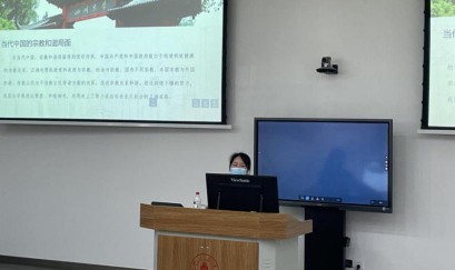 2022年4月1日下午,在望江校区基教C座202教室,我院2021级研究生辅导员林晨老师面向2021级研究生讲授本学期第一堂研究生综合素质课。本堂课主题为“宗教政策和民族团结”,旨在通过让同学们正确看待宗教与生活的关系,全面了解我国的宗教和民族政策,从而促进我国56个民族紧密团结,铸牢中华民族共同体意识。
