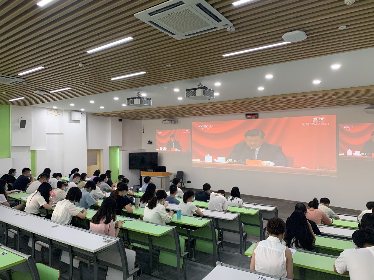5月10日上午,best365中国官方网站开展收听收看庆祝中国共产主义青年团成立100周年大会直播活动,在萃文楼210教室设置学院集中收看点,在各校区、各宿舍组织师生收听收看。学院中层领导干部、党委委员、支部书记、科级干部、青年教师和学生代表在学院集中收看点观看,其他师生分别在活动室、宿舍等地收听收看。