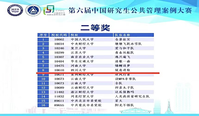 中国研究生公共管理案例大赛是我国公共管理领域规模最大、层次最高的研究生竞赛。我院MPA培养一直引导学生关注公共管理领域实际问题,提高学生运用相关理论和方法解决公共管理实际问题的能力。此次案例大赛成绩的取得,离不开学院、MPA中心及指导老师的支持与付出,离不开队员的协作与拼搏。best365中国官方网站MPA中心将继续立足西部,为培养公共管理人才贡献力量。