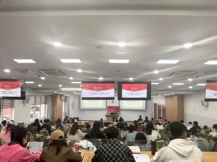 下午2时,学院党委书记韩杰以《党建引领与使命担当》为题授课,引导同学们明方向担使命,课程由院学生工作科副科长陈萱源主持。韩杰书记首先带领同学们重温党的二十大报告,强调要坚持加强党的全面领导和党中央集中统一领导。接着韩杰书记强调高校基层党建引领人才培养工作的重要性,作为社会主义事业的建设者和接班人,同学们既要具备一流的专业素养,也要具备一流的价值操守,在学习成长的过程中形塑社会主义核心价值观,做有志气,有骨气,有底气的新时代青年人!
