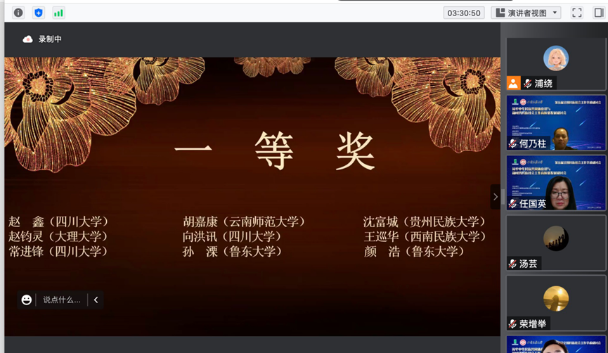 在研讨会闭幕式上,西南民族大学民族学与社会学学院社会工作系副主任杨成洲代表大会宣读了第五届全国民族社会工作学术研讨会研究生优秀论文获奖名单,王卓教授团队两位成员(赵鑫、常进锋)的参会论文经过前期专家匿名评审荣获优秀论文一等奖。这充分彰显了我院硕博士研究生扎实的专业功底和高水平的专业素养。西南民族大学民族学与社会学学院副院长范召全教授主持闭幕式并对本届研讨会做了全面而精彩的总结。