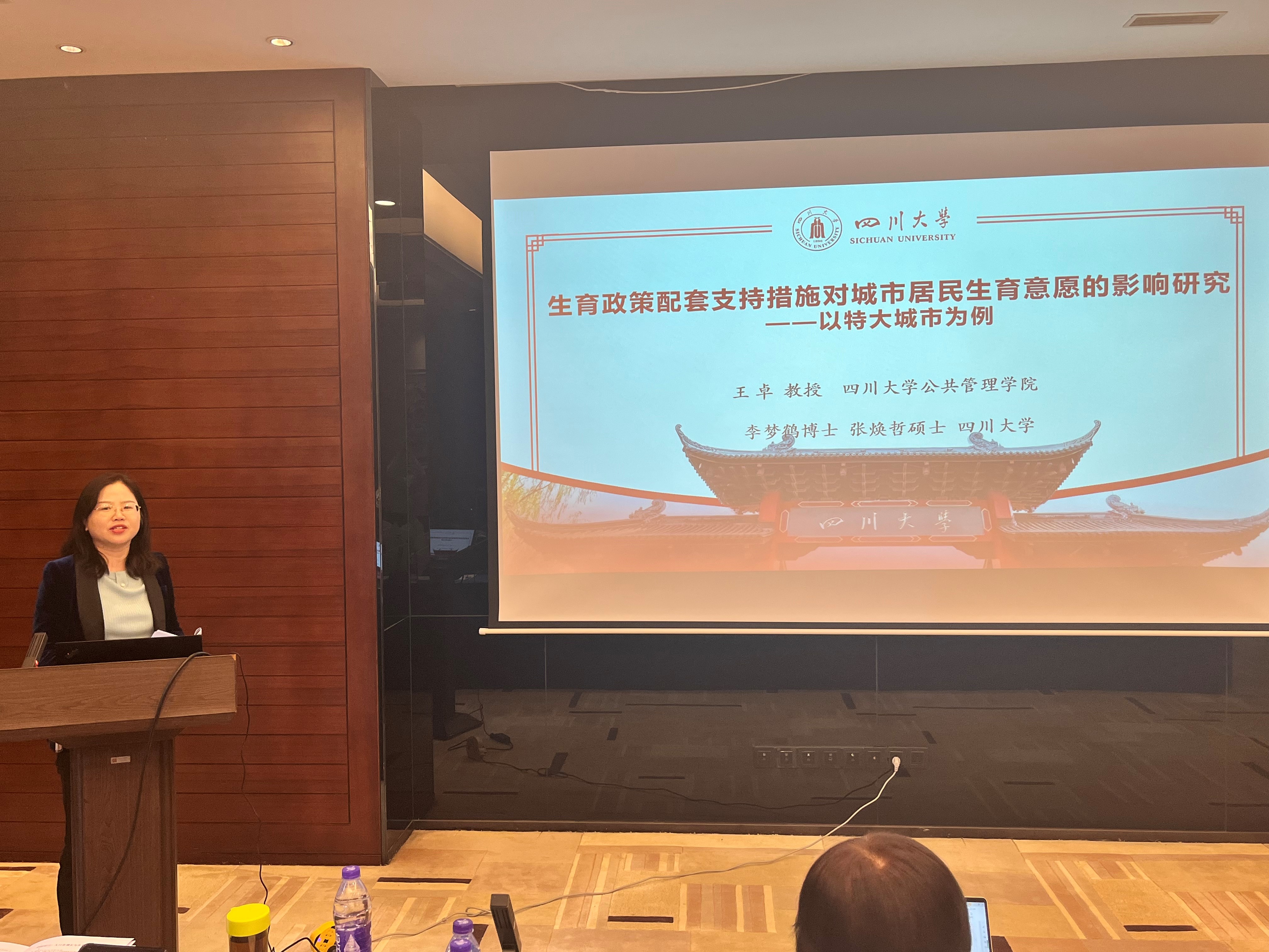 我院王卓教授携博士研究生李梦鹤应邀出席研讨会,并在“人口负增长与生育支持政策研究”分论坛中就“生育政策配套支持措施对超大城市居民生育意愿的影响研究”主题发言。王卓教授指出,生育成本是家庭整合、处理、计算其内外部环境信息的复杂过程,是影响生育意愿和行为的中介。以成都的实证研究结果表明孕育成本对生育意愿的正向影响可以在短期内被直接感知,教育成本对生育意愿的影响水平高于孕育成本。生育配套政策支持措施的外部影响需要被感知和纳入成本与收益计算才会发挥作用。王卓教授呼吁在设计生育配套政策时应关注性别平等的社会倡导与具体实践。本分论坛由中国社会科学院人口与劳动经济研究所郑真真研究员、北京大学社会学系李建新教授担任点评嘉宾,西安财经大学韦艳教授、中国人民大学人口与发展研究中心李婷教授担任主持人。