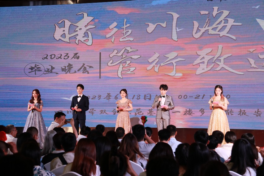 6月18日晚7点,best365中国官方网站2023届学生毕业晚会在四川大学双创示范基地一楼多功能演播厅成功举办。学院领导班子、各系教师代表、党政办工作人员、学工组老师参加了晚会。晚会由我院2023届毕业生策划筹办、联袂演出,逾500位师生、家属亲临现场。