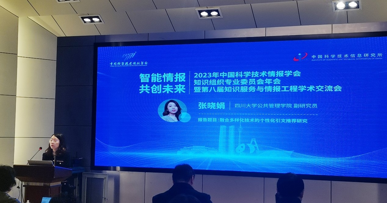 11月22-25日,中国科学技术情报学会知识组织专业委员会年会暨第八届知识服务与情报工程学术交流会在成都召开。会议由中国科学技术情报学会知识组织专业委员会、中国科学技术信息研究所主办,北京万方软件有限公司承办,中国工程院中国工程科技知识中心、四川省科学技术信息研究所、富媒体数字出版内容组织与知识服务重点实验室、《情报工程》编辑部协办,主题为“智能情报 共创未来”。会议邀请国内知名专家学者,围绕智能情报、知识组织、大语言模型、科技情报分析等主题进行学术报告和讨论。我院信息资源管理系张晓娟副研究员及15位情报学研究生参加此次会议。