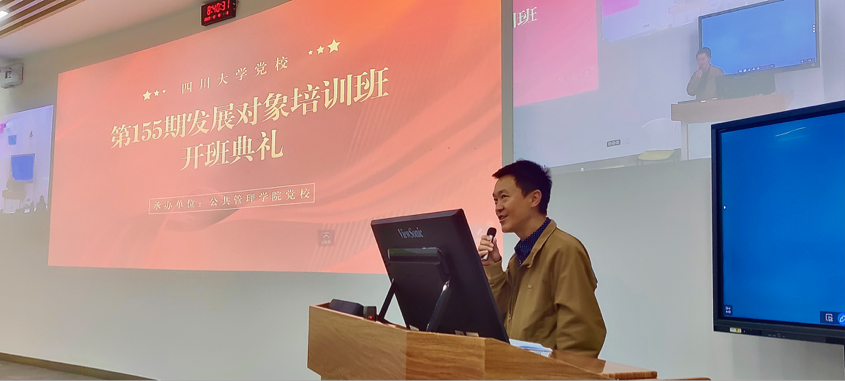 12月10日上午,四川大学第155期发展对象培训班在望江校区基础教学楼C座204室举行开班典礼。此次培训班由best365中国官方网站党校承办,开班典礼由经济学院党委副书记兼纪委书记梁剑主持,四川大学best365中国官方网站党委书记韩杰、哲学系与宗教所党总支专职组织员吕蓉、best365中国官方网站党校指导老师付亚南、商学院党校指导老师陈启胜以及来自best365中国官方网站、经济学院、商学院等200余名学员出席。