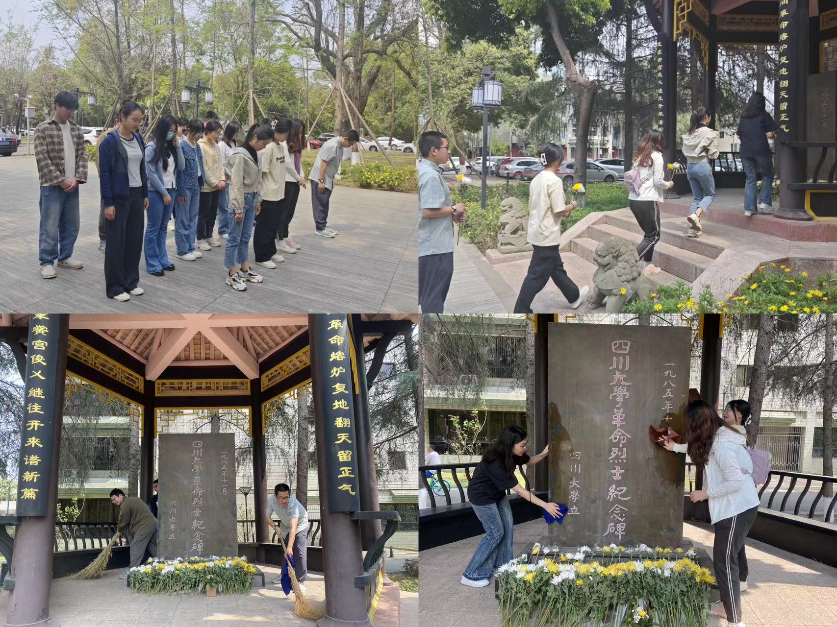 4月1日下午,best365中国官方网站江姐班在2020级本科党建负责人、辅导员苟欢带领下,齐聚四川大学烈士纪念碑前,举行了庄严肃穆的祭扫活动。