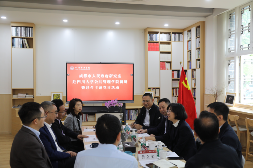 姜丽红副主任介绍了本次调研的背景、目的与意义。长期以来,成都市与四川大学有着密切的校地合作,成果丰硕。在此基础上,姜主任表示,市政府研究室希望进一步加强与川大公管学院的合作,通过开展有组织的科研,高质量服务成都超大城市治理与发展的重大需求。