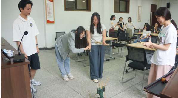 为弘扬和传承中华优秀传统文化,丰富干部教育学学科育人体系,活跃节日气氛、增进师生情感、增强师生凝聚力与归宿感。端午前夕,干训基地精心策划了“乐享端午 放粽一夏”干部教育学硕士点师生联谊活动。活动涵盖了“知文飞花”“快乐传真”“我划你猜”“谁是卧底”和“更胜一筹”五个竞赛单元,师生被分为了“粽子队”“龙舟队”“咸鸭蛋队”三个小组共同参与。经过比拼,教学中心与研究生们组成的“粽子队”获得冠军。