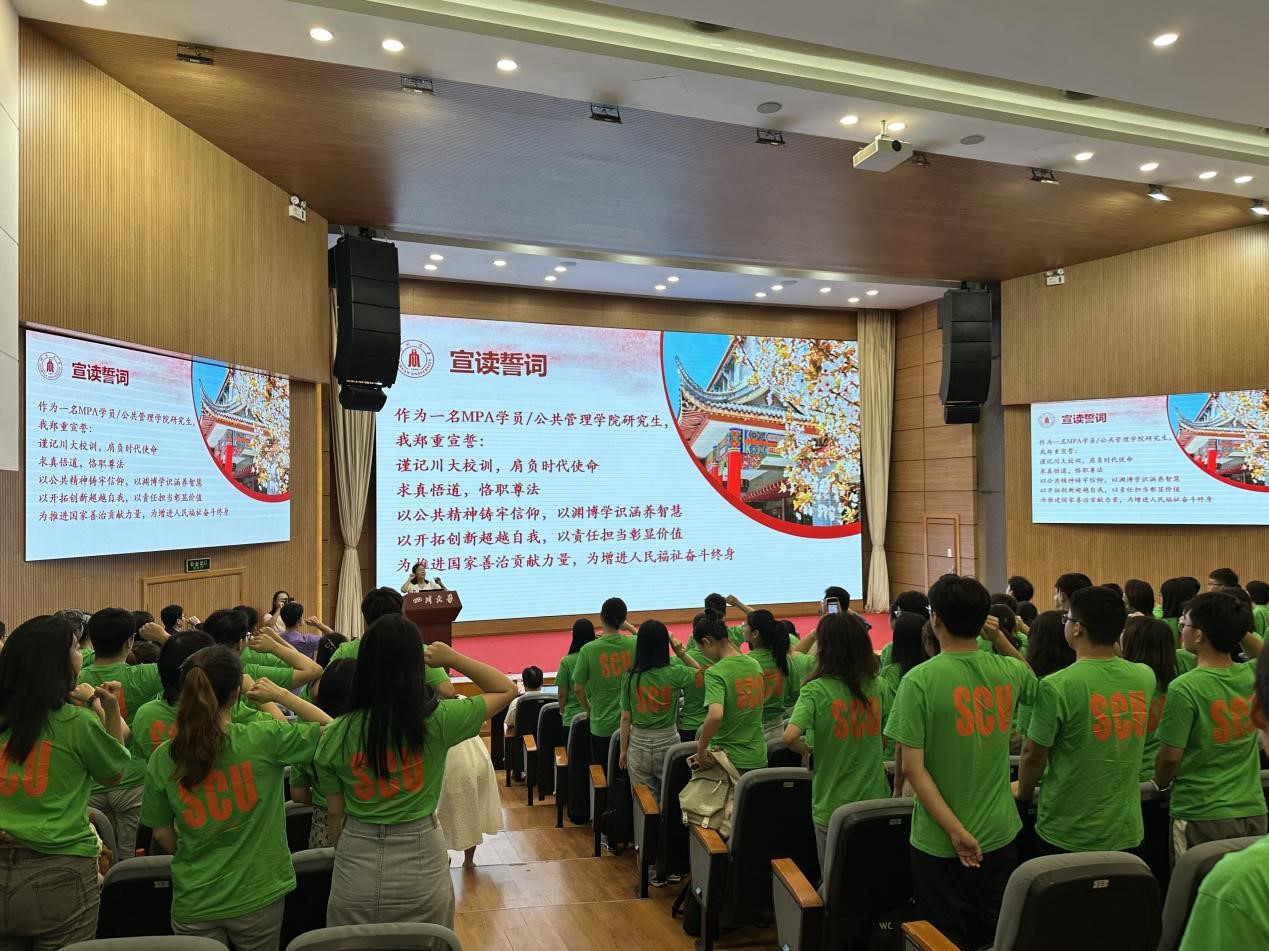 罗亚玲副书记带领全体新生宣读公管誓词,重温川大公管人的初心和使命。