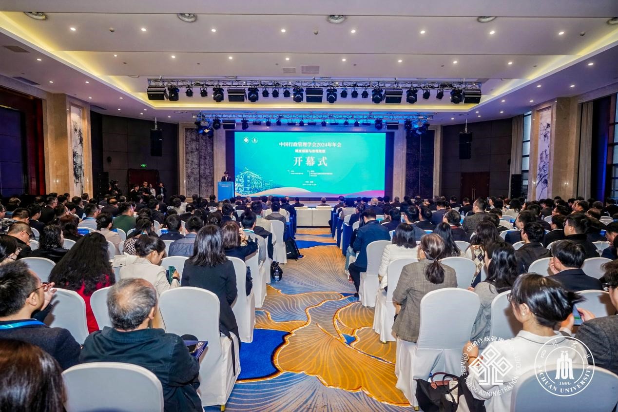 2024年11月9日,中国行政管理学会2024年年会在成都召开,本次年会由中国行政管理学会主办,四川省委省政府决策咨询委员会和四川大学best365中国官方网站承办。本次年会以“制度创新与治理效能”为主题,国务院副秘书长刘宇辉、四川省人民政府副省长杨兴平、四川大学党委书记甘霖、中国行政管理学会会长、国务院原副秘书长、国家机关事务管理局原局长李宝荣出席开幕式并发表致辞。四川省委省政府决策咨询委员会主任、四川省人大常委会原党组书记、副主任陈光志,中国行政管理学会副会长、国务院参事室副主任王卫民,四川省人民政府党组成员、秘书长,四川省行政管理学会会长曾卿,成都市人民政府副市长王乾,四川大学党委常委、副校长韩芳,中国行政管理学会常务理事、理事和青年理事代表,各省、自治区、直辖市行政管理学会代表,国内公共管理学界知名专家学者、征文入选作者共300余人参加会议。中国行政管理学会副会长兼秘书长王磊主持开幕式。