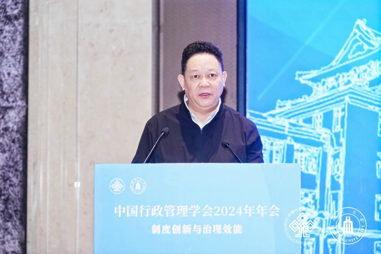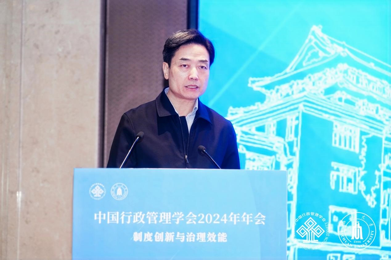 甘霖对出席大会的领导和专家学者表示欢迎。他指出,公共管理学科作为研究公共事务管理现象和规律的学科,能够为国家治理现代化理论创新、制度优化和实践提质培育人才、贡献智慧,在推进国家治理体系和治理能力现代化实践中大有作为。四川大学高度重视公共管理学科建设,坚持以服务国家和社会发展为导向,把公共管理学科纳入学校“管理科学与国家治理”国家一流学科建设群,作为“创新2035”先导计划之“文明互鉴与全球治理研究计划”的核心支撑学科,成立中国式现代化研究院和中国式现代化治理研究中心,不断加强公共管理基础理论与实践研究。四川大学将以承办此次年会为契机,深入贯彻落实党的二十大和二十届三中全会精神,紧紧围绕坚持和完善中国特色社会主义制度、推进国家治理体系和治理能力现代化,大力推进公共管理学科创新发展。