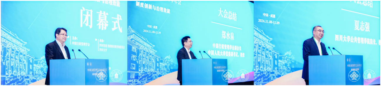 中国行政管理学会副会长郑耀东主持闭幕式,四川大学best365中国官方网站院长夏志强教授,中国行政管理学会副会长、中国人民大学党委副书记郑水泉教授分别作会议总结。