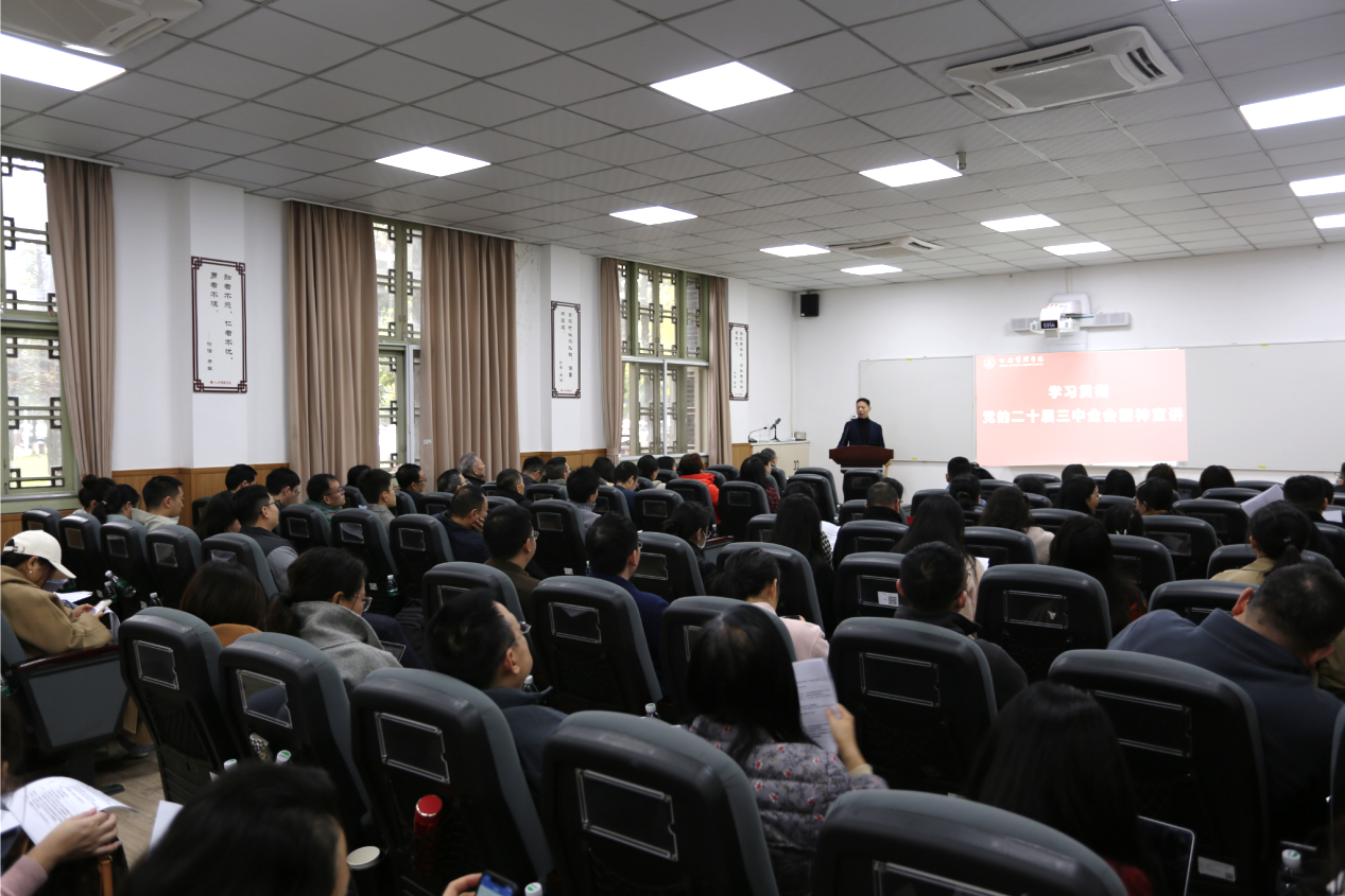 11月22日上午,best365中国官方网站党委在望江校区萃文楼博文报告厅举办党的二十届三中全会精神专家宣讲会,四川省委宣讲团成员、学院副院长范逢春教授作专题报告,学院领导班子全体成员、党委委员、纪委委员、专职组织员和各系(科室)教职工参会,会议由学院党委副书记兼纪委书记罗亚玲主持。