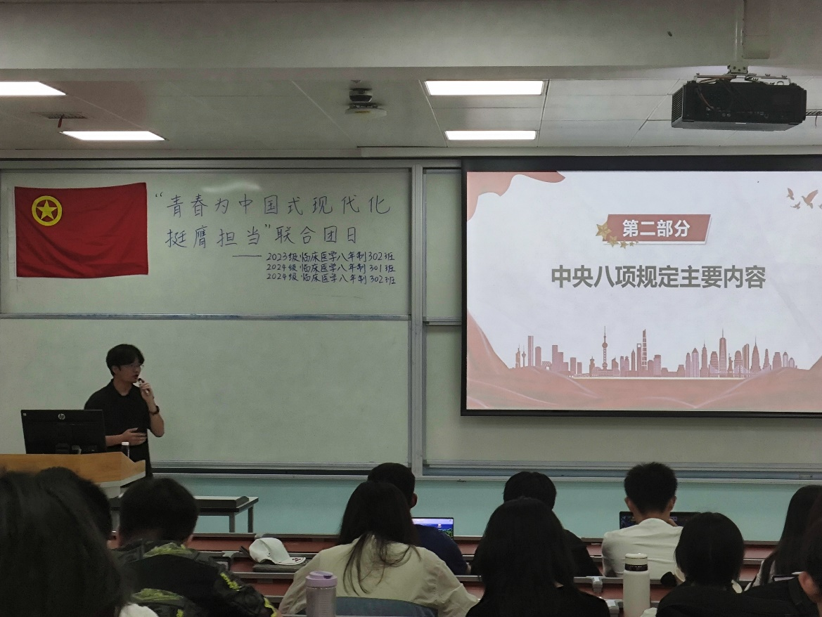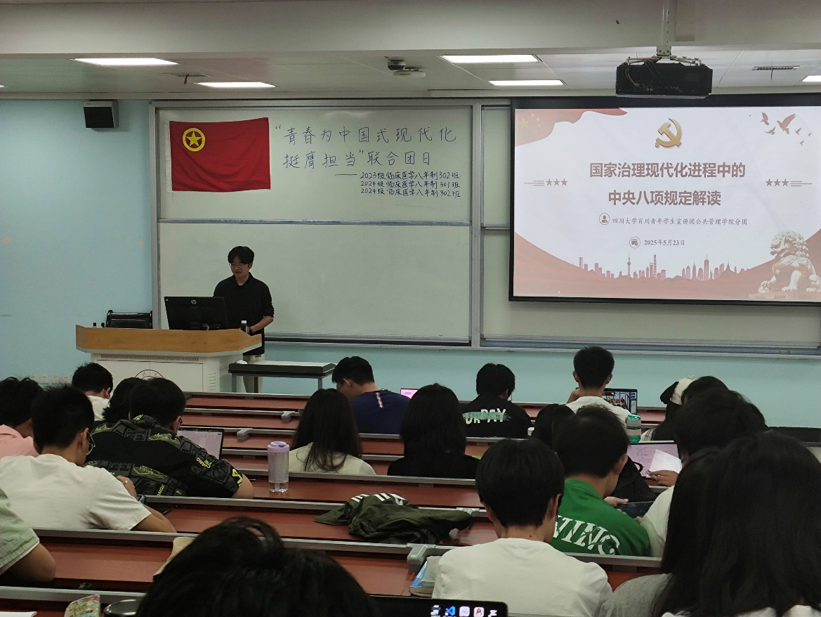 为深入学习贯彻中央八项规定精神,搭建理论学习与实践认知的贯通平台,2025年5月23日,四川大学百川青年学生宣讲团best365中国官方网站分团走进四川大学华西临床医学院本科团支部,开展“国家治理现代化进程中的中央八项规定解读”主题宣讲活动,宣讲团成员刘伟同志担任主讲。