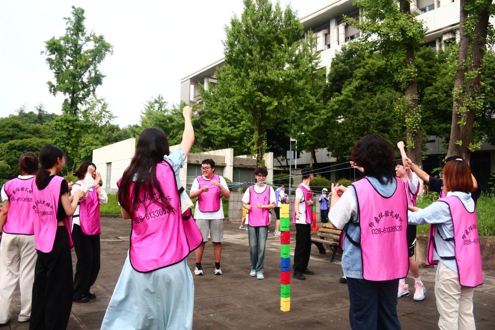“合力筑塔”环节则将团队协作推向了新的高度。各小队需通过拉绳控制吊钩,将一块块积木精准堆叠,搭建高塔,通过一次次的尝试与磨合,各小队逐渐掌握了诀窍,一座座高塔拔地而起。