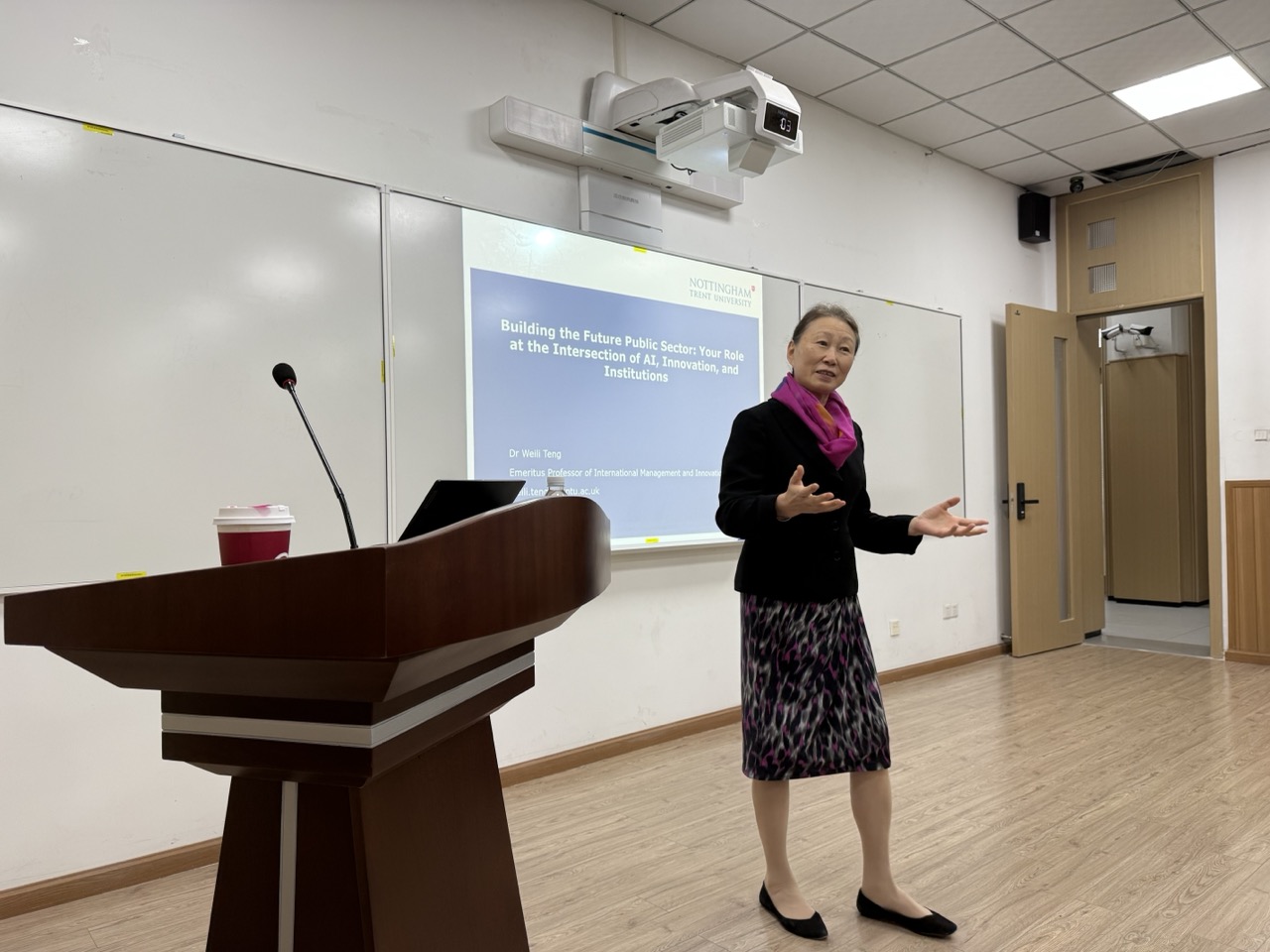 2025年11月7日下午,英国诺丁汉特伦特大学终身教授滕伟丽应邀做客我院“格致讲坛”和“社会学华西论坛”,于萃文楼105室发表了题为“制度、AI与人才:赋能公共服务数字化转型”的学术讲座。本次讲座由我院郑莉副教授主持,吸引了校内外师生及领域内学者四十余人参与。