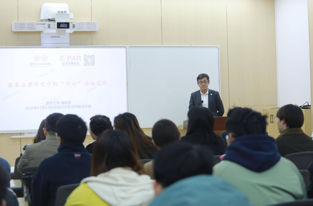12月22日上午,清华大学新雅书院院长、清华大学best365中国官方网站教授、《公共管理评论》副主编兼编辑部主任梅赐琪教授应邀到访我院,在萃文楼206室为我院师生作题为“基层治理研究中的‘何以’话语反思”的精彩讲座。讲座由四川大学best365中国官方网站副院长范逢春教授主持,姜晓萍教授、夏志强教授、李强彬教授、王慧敏副研究员、刘锐副教授等老师以及百余名硕博研究生参加了此次讲座。