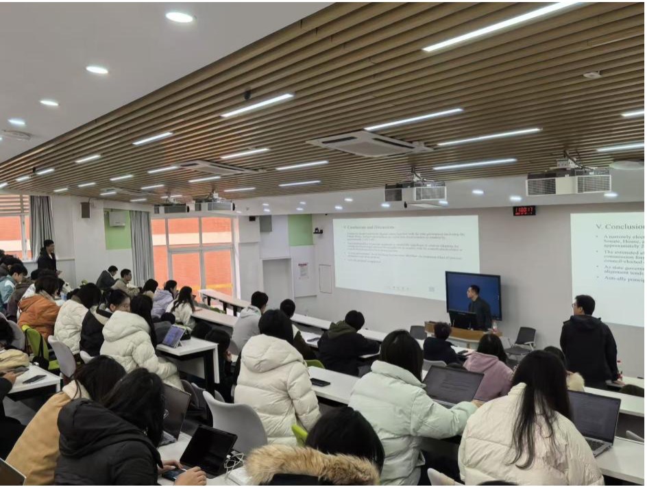 在具体研究内容的展开中,魏文池副教授重点围绕两项核心准实验研究,详细介绍了他的研究总体逻辑脉络和分析过程,阐述了两项研究的核心假设、框架设计、数据来源的筛选标准及量化分析方法,通过严谨的逻辑推演与数据论证,清晰呈现了党派政治对政府预算分配倾向、支出效率及政策落地效果的影响路径和实际效应。此外,他还结合典型案例,深入解读研究结论背后蕴含的政策内涵,指出党派立场差异对预算资源配置的潜在影响,为同学们理解政府预算治理的复杂性提供了全新视角。