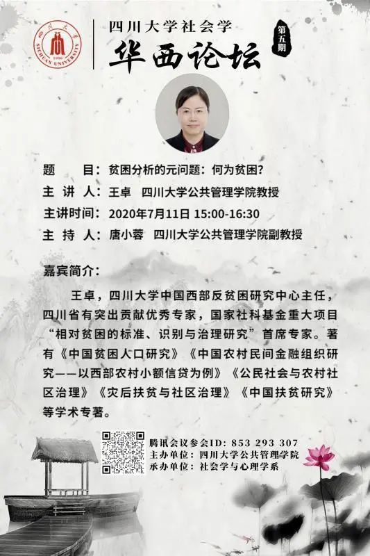 王卓,四川大学中国西部反贫困研究中心主任,四川省有突出贡献优秀专家,国家社科基金重大项目“相对贫困的标准,识别与治理研究”首席专家。著有《中国贫困人口研究》《中国农村民间金融组织研究—以西部农村小额信贷为例》《公民社会与农村社区治理》《灾后扶贫与社区治理》《中国扶贫研究》等学术专著。