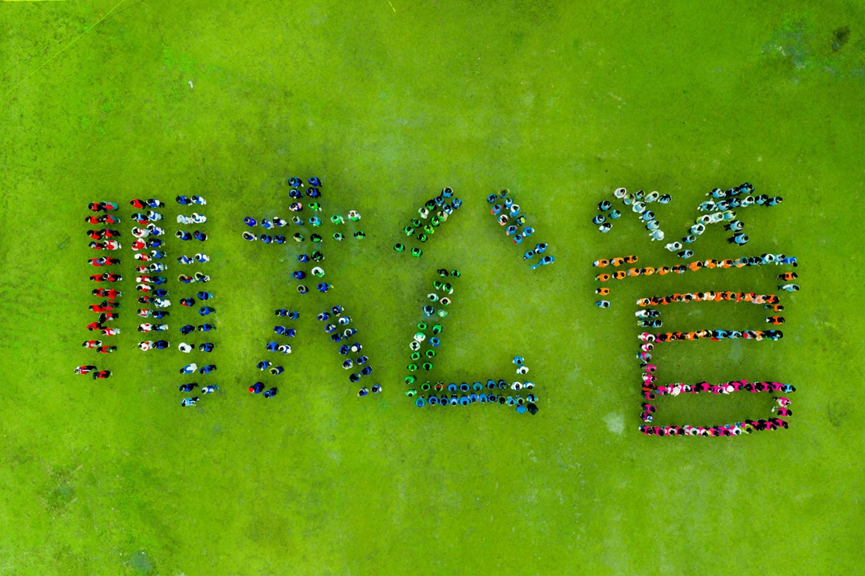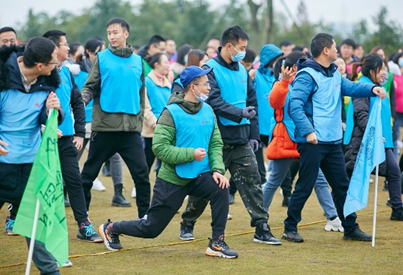 在初步构建彼此信任基础上,在心理和体能得到充分准备后,8支队伍分为两组进行团队竞赛大比拼。竞赛中,无论是“跨越沼泽”还是“旱地龙舟”,都展现出团队间彼此信任、相互帮助。在合作中,有的同学主动站出来指挥队员分工协作;有的同学思路清晰,积极支招;有的同学活泼开朗,负责气氛带动,加油号子喊得十分响亮。一番激烈的竞技比赛后,同学们的默契度和信任感得到增强。最后,近400名同学再次汇聚一起,共同拾起两圈坚实的长绳,手牵手、肩并肩组成人墙,开始了体力与毅力的终极考验项目——众人划桨士气高。活动中,所有人需用力紧绷身前长绳,8名队长站在绳上环绕一圈扮演“船长”角色,伴着激昂的音乐和长绳“海浪”,“船长”要在绳子上前行。此项团队合作活动,即锻炼胆识,又熔炼团队精神。