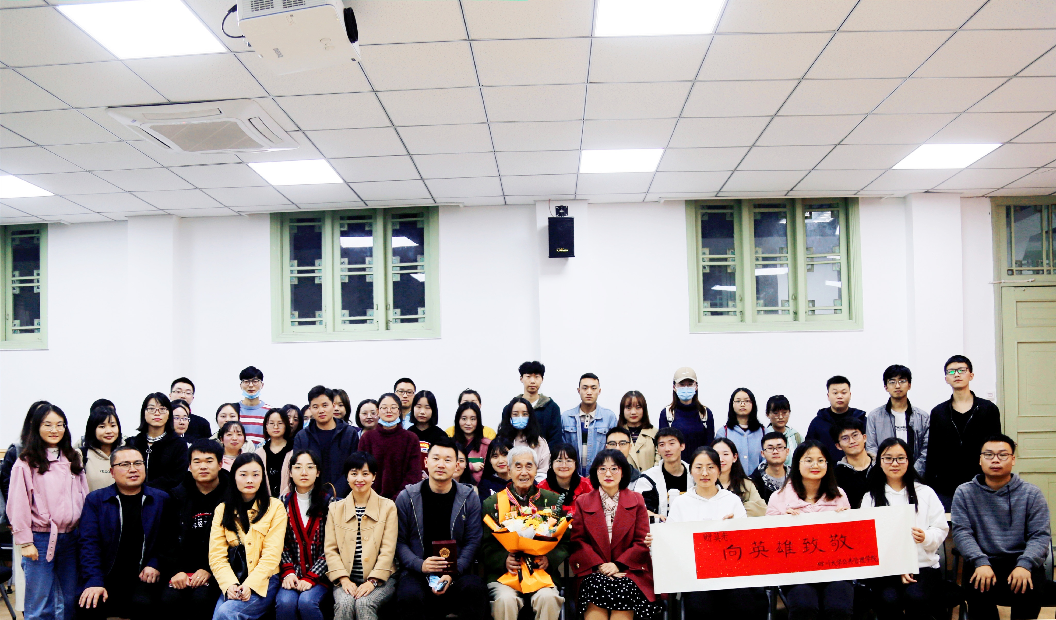 在罗亚玲副院长的介绍下,90高寿的莫若健老先生身着军装与勋功章,手拿记载他一生传奇的书籍和报纸,步伐坚定地走向讲台。站定后,莫老开心地向大家敬礼,在大家的掌声中开始了他的分享。90分钟的分享莫老全程站着讲完,动容之处不禁哽咽落泪,每一个细节都在传递着那段历史于个人于国家的重量。