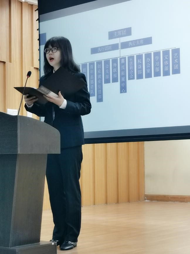 紧接着,团委学生会主席候选人强甜同学向大会做了年度工作报告。她主要从团委学生会组织建设、活动开展情况、社会服务概况及创新工作机制四个板块展示了2019-2020年度团委学生会的工作成果,并表达了新的学年里团委学生会全体成员为学院师生服务的热情与决心。随后,大会对主席团换届人选、执行团换届人选、部长团换届人选进行了逐一审议、并表决通过。强甜等4名学生干部候选人当选新一届团委学生会主席团成员,王德超等34名学生干部候选人当选新一届团委学生会部长团成员。