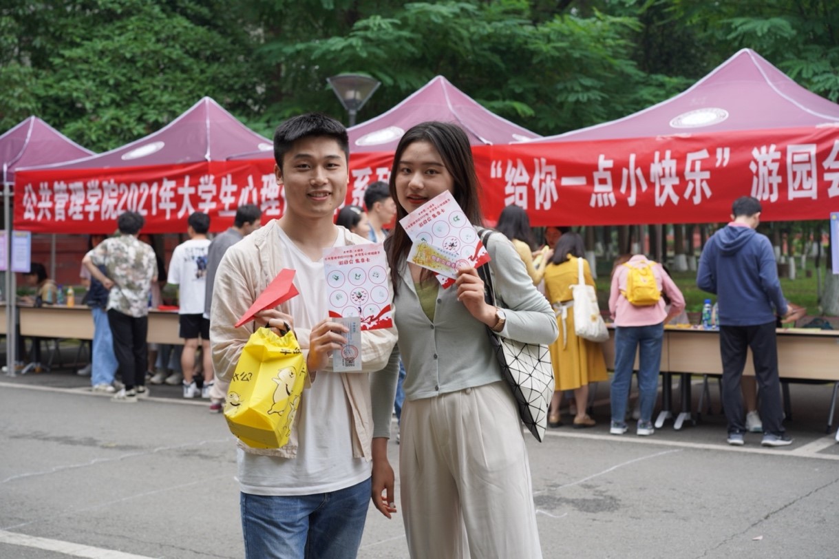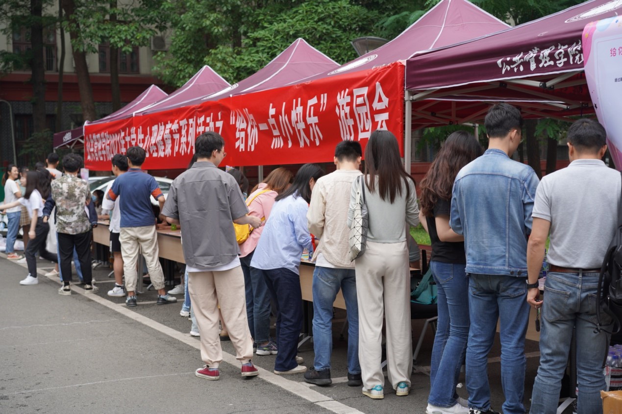 2021年5月22日下午,四川大学best365中国官方网站在学院楼前开展了2021年大学生心理健康节“大世界,小确幸”系列活动之“给你一点小快乐”子活动。本次活动采取了“游园会”的开放式活动形式,由来自best365中国官方网站的志愿者们搭台,活动面向全校同学开放,经济学院、商学院、best365中国官方网站等多学院同学积极报名参加了本次活动。