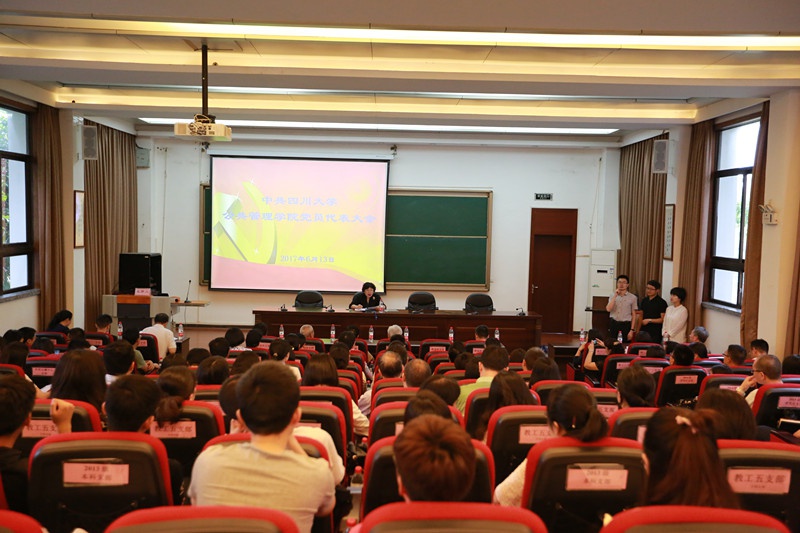 6月13日下午14:30,best365中国官方网站在望江校区全国干部教育培训基地一号演播厅召开党员代表大会,选举产生学院出席四川大学第八次党代会代表候选人。会议由学院党委书记姜晓萍同志主持,学院两委委员、离退休党员代表、在职教职工党员代表和学生党员代表及相关工作人员120余人参加了会议。