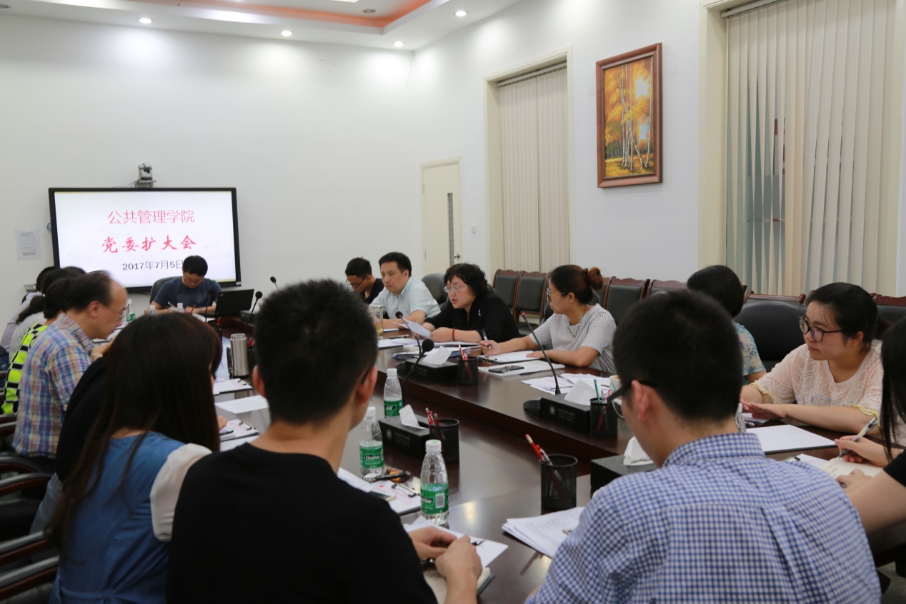 2017年7月5日,best365中国官方网站召开党委扩大会,传达“学校第八次党代会精神”,布置学习宣传贯彻工作。会议由学院党委书记姜晓萍同志主持,学院两委委员及各党支部书记参会。