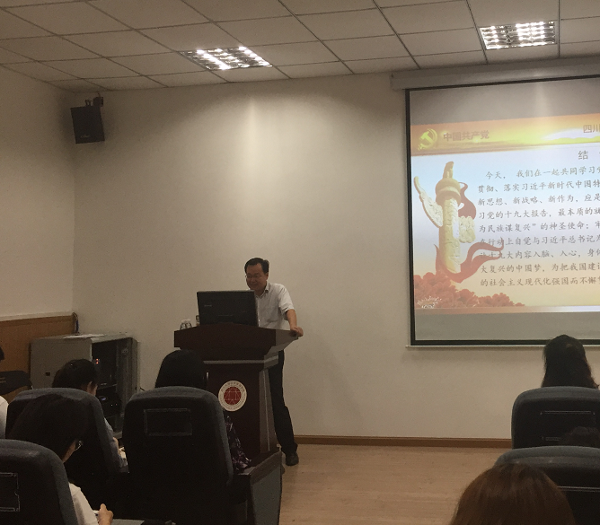为深入贯彻落实习近平新时代中国特色社会主义思想和党的十九大精神,7月17日下午,四川大学“学习贯彻党的十九大精神宣讲团”成员、best365中国官方网站院长史云贵教授在学院105报告厅为学院学生党员作党的十九大精神宣讲报告,报告主题为《新时代 新使命 新思想 新策略 新作为——全面学习、贯彻、落实十九大精神》。报告会由学生辅导员、各年级学生党员代表参加。