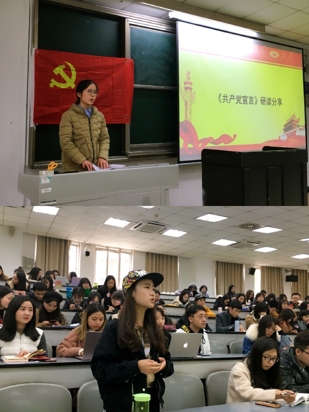 随后,全体党员进入“红色经典”名著研读——《共产党宣言》的学习环节。“红色经典”名著研读活动依托第三支部哲学和宗教学专业党员同志开展,将党建工作与专著研读学习相融合。首先,由best365中国官方网站2018级研究生第三支部韩洁同志进行《共产党宣言》研读。韩洁同志指出,共产党宣言的诞生标志着马克思主义的诞生,对全世界的无产阶级革命运动起了巨大的推动作用。她从马克思、恩格斯的生平、著作的写作背景、著作的引言和正文四章全面、多维度阐释了《共产党宣言》,并结合我国特点,提出了对新时代中国特色社会主义建设的建议。