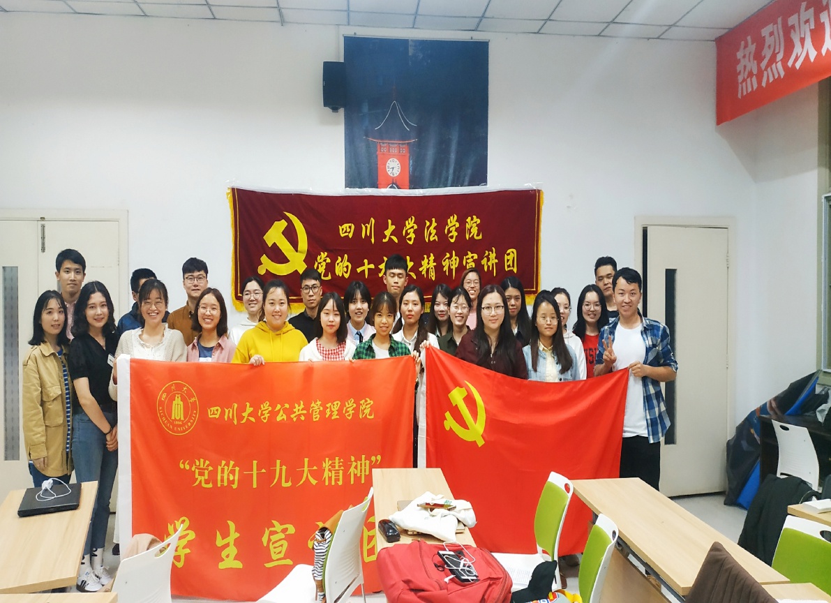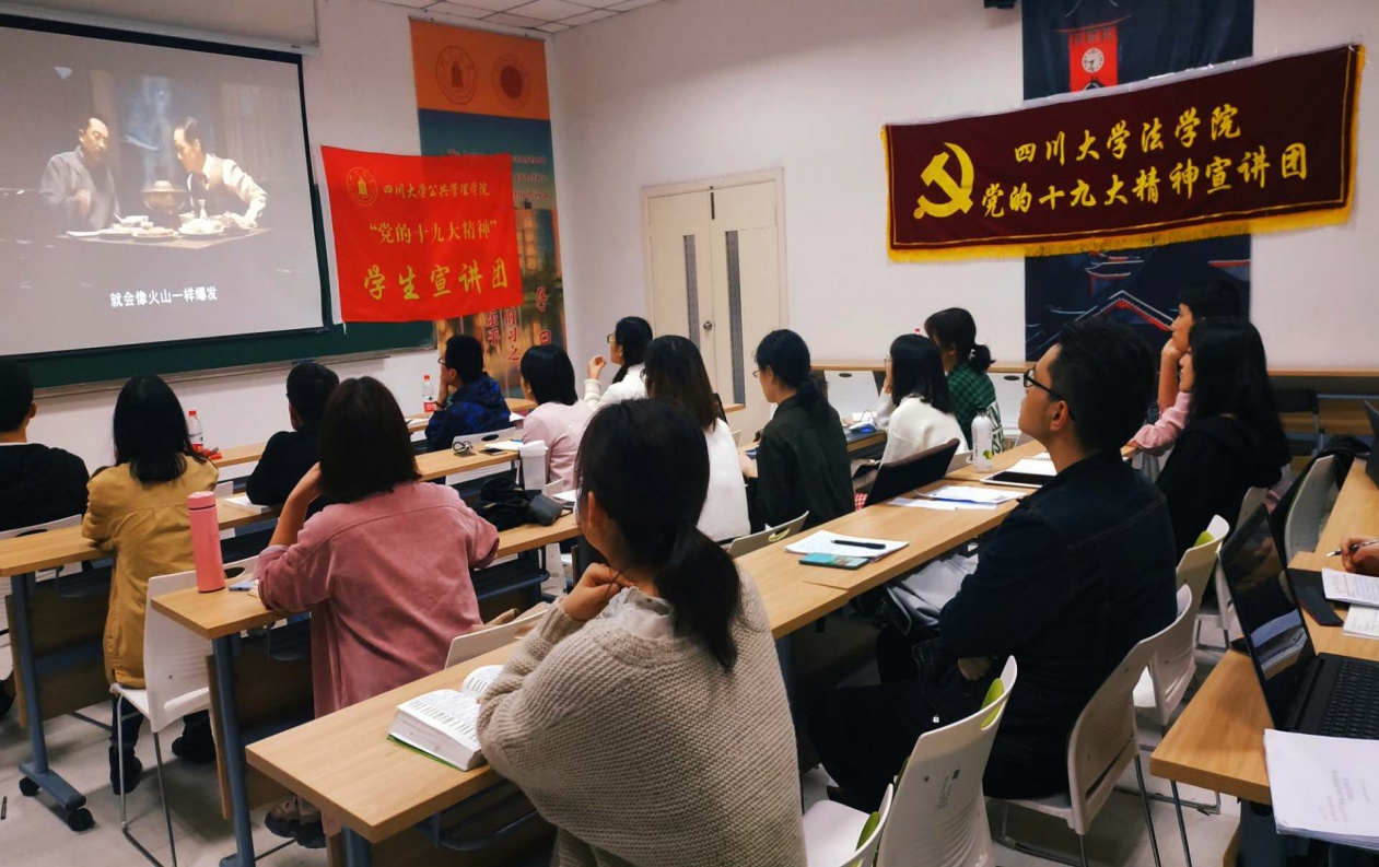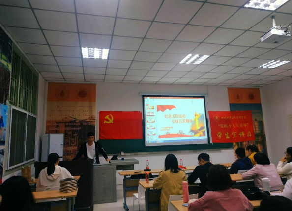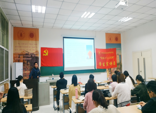 今年是中华人民共和国建国70周年、五四运动100周年。为了激励和引领青年大力弘扬以爱国主义为核心的伟大民族精神,坚定“四个自信”,矢志投身新时代夺取中国特色社会主义伟大胜利的新征程,响应团中央工作部署及学校的相关工作要求,“党的十九大精神”best365中国官方网站宣讲团、法学院宣讲团和best365中国官方网站2017级研究生第三党支部于4月20日晚19:30在望江校区best365中国官方网站305教室共同举办了“青春心向党 建功新时代”的主题宣讲活动。