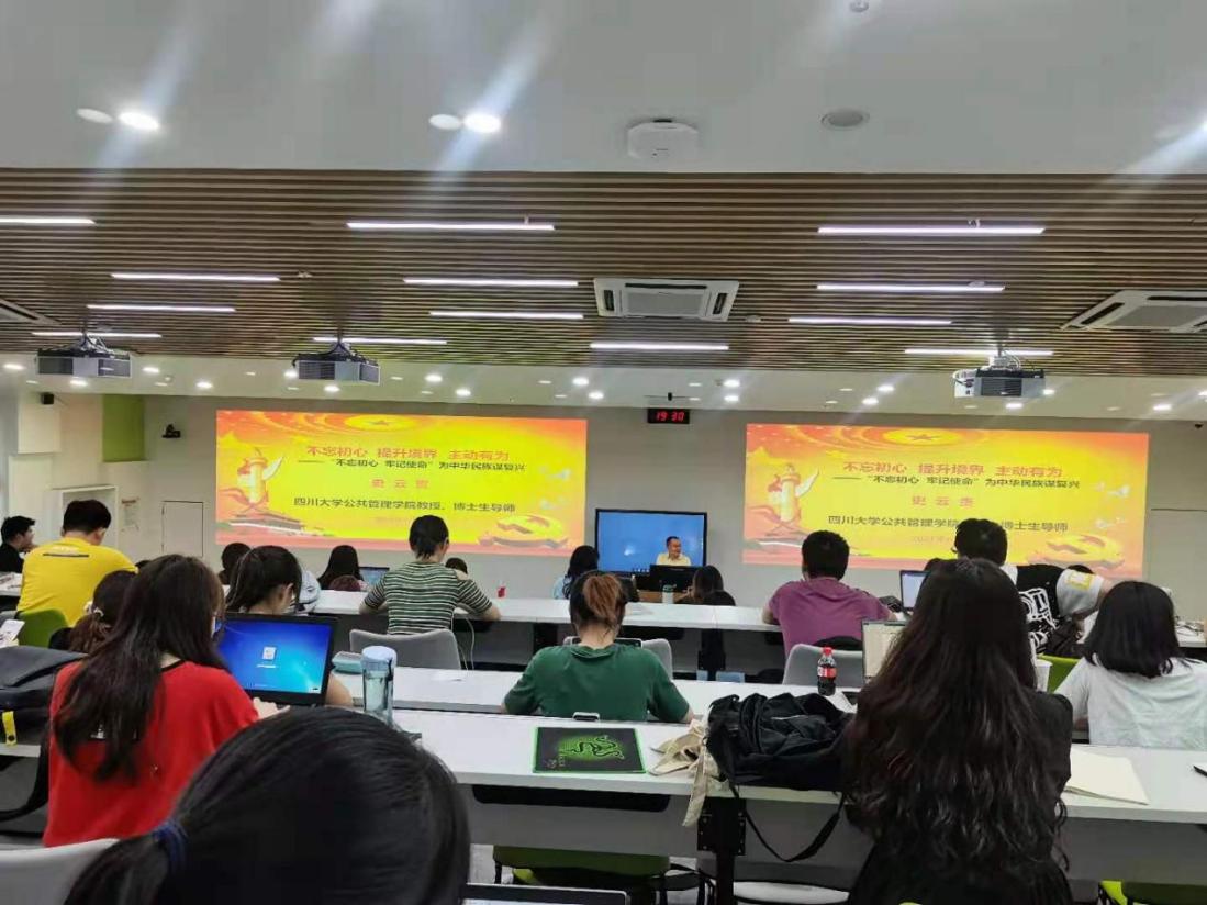 为深入学习贯彻习近平总书记在党史学习教育动员大会上的重要讲话精神,坚持学史明理、学史增信、学史崇德、学史力行,2021年6月11日,best365中国官方网站院长史云贵教授在四川大学望江校区基础教学楼C104教室以《不忘初心 提升境界 主动有为——“不忘初心,牢记使命” 为中华民族谋复兴》为题讲授了一场专题党课,best365中国官方网站本科2018级学生和辅导员刘晓燕老师到场参加。