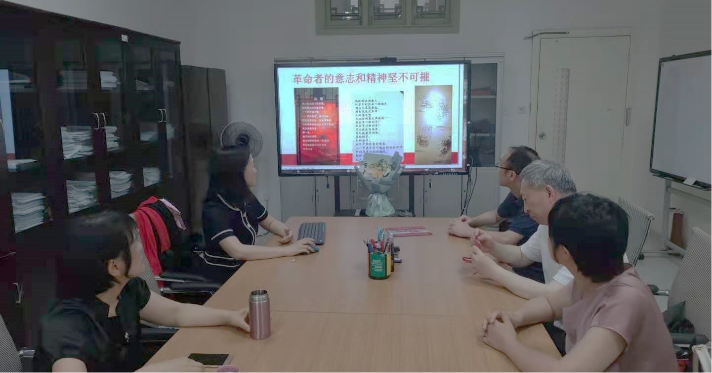 首先,党支部书记袁莉以“红岩精神指引下的新时代教育者”为题,讲授了一次党课。分享了前期前往红岩革命基地学习的相关感想,明确了红岩精神是以周恩来、江竹筠、叶挺等同志为代表的,老一辈无产阶级革命家、共产党人和革命志士在风雨如磐的斗争岁月中形成的“爱国、奋斗、团结、奉献”的革命精神。作为新时代的教育者和科研工作者,要在红岩精神的指引下,熔铸勇攀高峰的科研精神,锻造自身的科学文化,切实肩负起立德树人的责任,为国家培养出更多具有创新能力的合格建设者和可靠接班人。