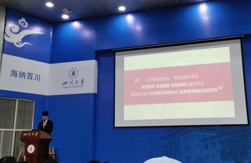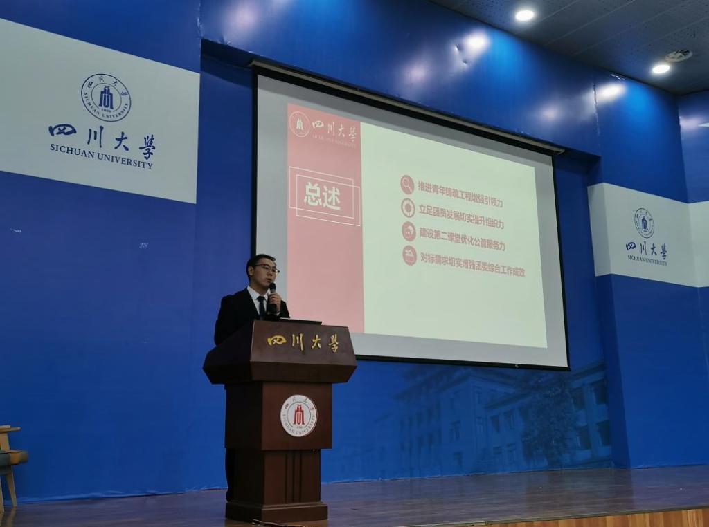 学院团委学生副书记徐宇航代表共青团四川大学best365中国官方网站第四届委员会作工作报告,报告从推进青年铸魂工程增强引领力、立足团员发展切实提升组织力、建设第二课堂优化公管服务力、对标需求切实增强团委综合工作成效四个方面具体地阐述了近一年来best365中国官方网站团委开展的丰富多彩的高质量活动及其取得的出色成效。工作报告充分体现了best365中国官方网站“公成天下,管法自然”的院训内涵,凸显了新时代“公管人”的精神风貌。