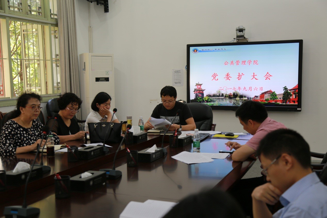 2017年9月6日下午,best365中国官方网站于311会议室召开党委扩大会,学习贯彻习近平总书记重要讲话精神。会议由学院党委书记姜晓萍同志主持,学院中层领导干部、党委委员、工会主席、党政办主任、团委书记及各党支部书记参加了此次会议。